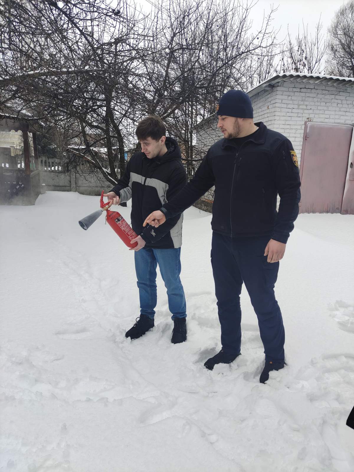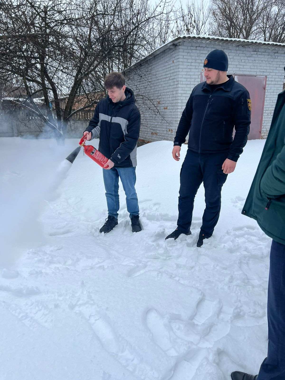 За участі представника ДСНС було практично відпрацьовано гасіння умовної пожежі первинними засобами пожежогасіння.